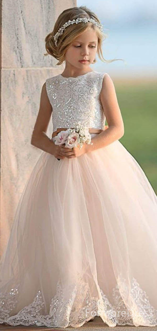 Elegant Sleeveless Lace A-line Long Flower Girl Dress, FGD41