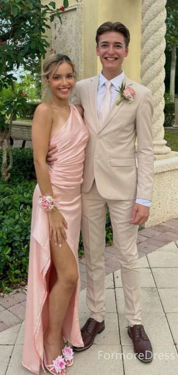 Elegant Pink One Shoulder Split Side Mermaid Long Prom Dress,PD4571
