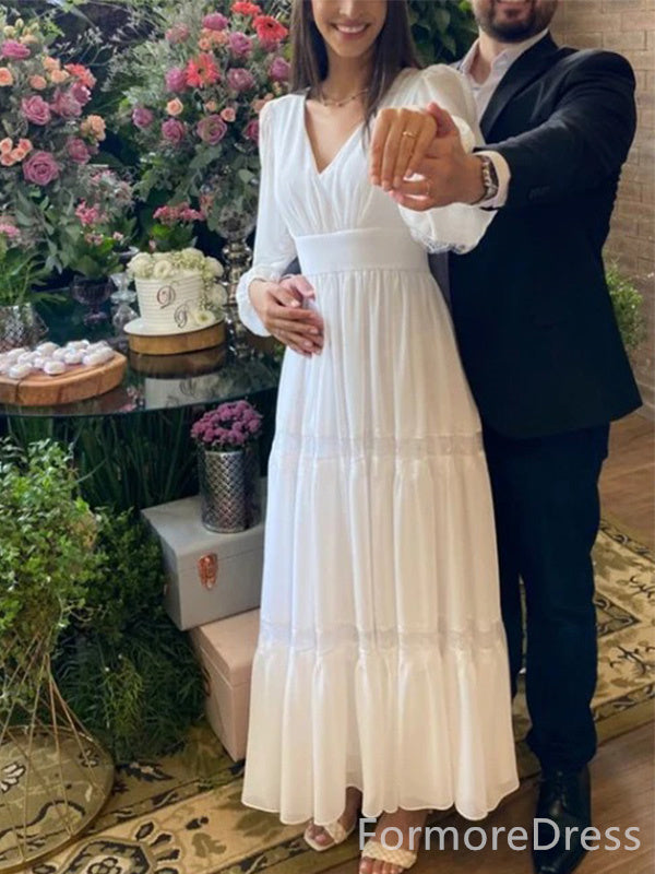 Elegant V-neck Long Sleeves A-line Long Prom Dress,PD331