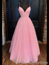 Elegant V-neck Spaghetti Strap A-line Long Prom Dress,Evening Dress,PD308