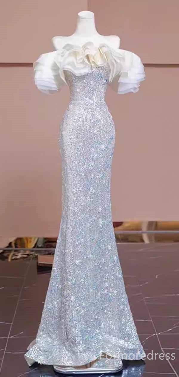 Gorgeous Off-Shoulder Strapless Sequins Mermaid Long Prom Dress,PD438