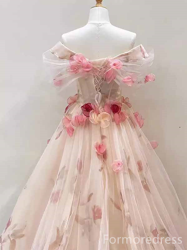 Gorgeous V-neck Off-Shoulder Appliques A-line Long Prom Dress,PD4582